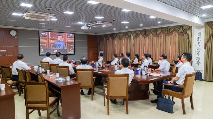 本网讯 7月1日上午,庆祝中国共产党成立100周年大会在北京天安门广场隆重举行,中共中央总书记、国家主席、中央军委主席习近平发表重要讲话。我校全体校领导、校长助理,各职能教辅单位负责人在行政楼501会议室集中收看大会盛况,各二级学院分别在各学院会议室组织师生集中收看大会盛况。