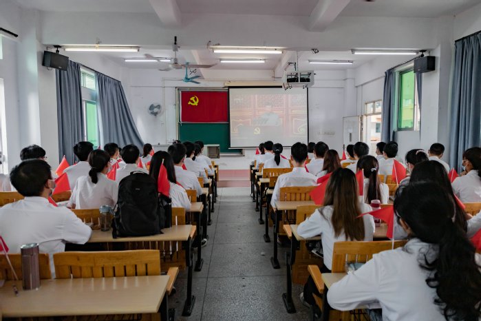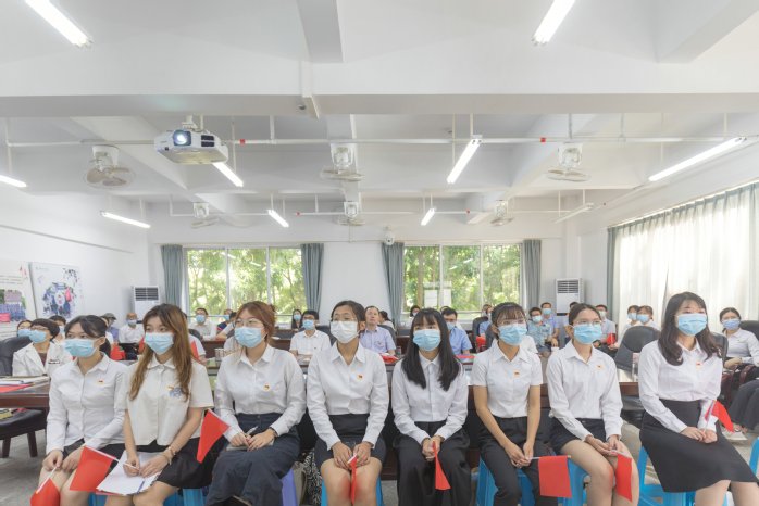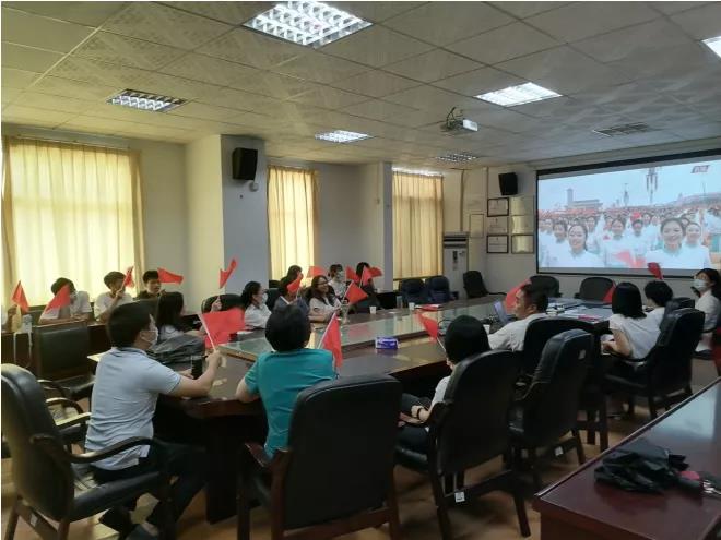 师生们手拿小红旗、党员师生们佩戴党徽,与庆祝大会会场同步高唱国歌、国际歌,认真聆听习近平总书记的重要讲话,备受欢欣鼓舞。大家纷纷表示,感党恩、听党话、跟党走,将牢记嘱托、不负韶华,努力为实现第二个百年奋斗目标和中华民族伟大复兴的中国梦作出应有的贡献。