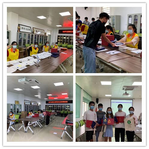 6月22日,在化工楼E503会议室,志愿者们协助指导老师将毕业证、学位证以及毕业纪念品等毕业资料陆续送到毕业生手中。毕业生手拿双证,背上学院为他们专门定制的毕业纪念品,喜悦之情溢于言表。