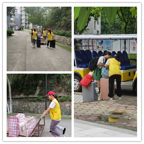 6月20日至6月26日,每天不同的时间段,都有志愿者们驻扎在毕业生宿舍楼下,协助毕业生学长学姐搬运行李。六月酷暑,骄阳似火,在志愿者们的协助下,毕业生顺利打包好行李,踏上新征程。