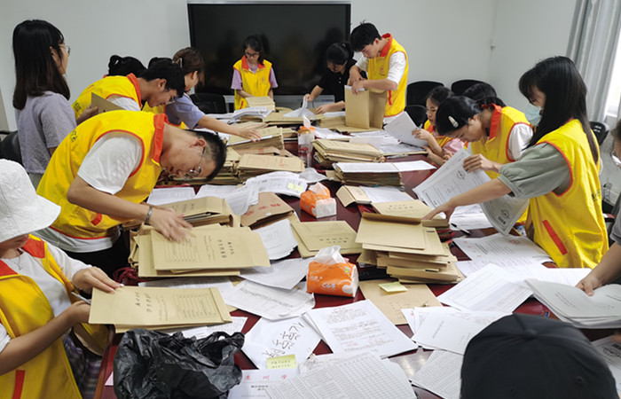 6月29日,志愿者们在少康楼304集中地对毕业生们的档案进行封装,虽然资料档案繁多,但在指导老师的带领下,工作开展地井然有序、有条不紊,最终完成了290余名毕业生档案的装封。