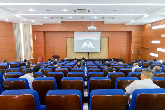 全体校领导、校长助理,全体中层正职(含主持工作副职)在我校分会场文城会议厅参加视频会议。