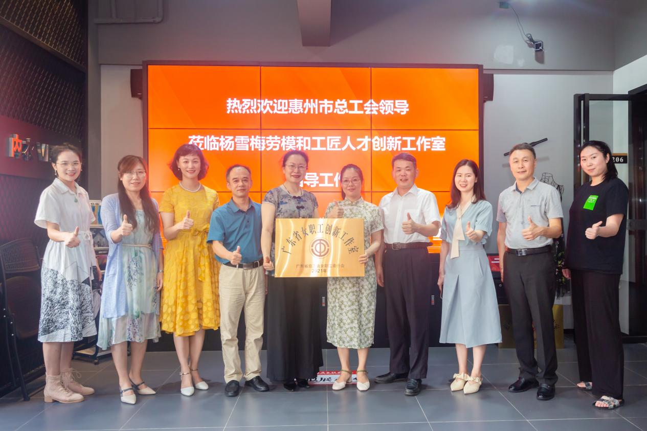 本网讯 7月13日,惠州市总工会女职工委员会副主任杨素萍、维护部副部长巫瑞瑾等一行3人到我校服装楼参观指导杨雪梅广东省和惠州市女职工创新工作室。我校工会常务副主席李富明、副主席郑党生,侨联主席张小琨、旭日广东服装学院党总支书记曾裕林,以及创新工作室杨雪梅教授等教师代表参加座谈。