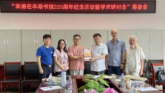 本网讯 8月28日上午,我校在旭日大楼422会议室召开“宋湘在丰湖书院220周年纪念活动暨学术研讨会”筹备会,学校党委副书记、纪委书记、省监委驻惠州学院监察专员罗川山,广东省客家商会书画艺术研究院、梅州宋湘研究会、梅州市文联、广东省客家商会书画艺术研究会、惠州市东江书院、惠州阅客文学院以及我校文学与传媒学院、惠州文化研究院等负责人参加会议。会议由文学与传媒学院院长(惠州文化研究院院长)陈梦主持。