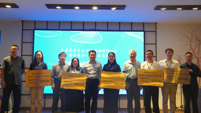 会议进行了普通话吟诵课程研讨展演、首师大吟诵基地工作汇报、高校中华优秀传统文化课程建设与教材编写研讨、各高校普通话吟诵工作汇报、普通话吟诵实验高校授牌等环节,我校与其他与会高校被授予首都师范大学-教育部中华优秀传统文化传承基地的首批“中华古诗文吟诵和创作实验高校”。