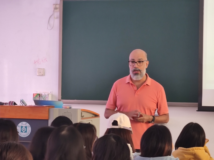 10月25日上午,首节新聘外籍教师公开课在旭日大楼504教室进行,由外国语学院墨西哥籍外教JOSE LUIS ROJAS ROMAN主讲《英语写作》课程。JOSE老师从天气话题导入本次课程,让同学们在轻松愉悦的氛围中回顾前期布置的阅读作业,邀请部分学生就自己印象深刻的一些段落进行总结陈述,并提出具体问题。在此过程中,JOSE老师密切关注发言学生及其他学生的表现,及时指出学生在表述当中的错误并进行修正。在确认学生对“穿着”这个话题已经有基本的语言知识储备并形成了自己的见解后,JOSE老师进入写作部分的教学。围绕“你认为学生是否应该穿校服”这个主题,JOSE老师向学生展示了一篇文章,要求学生从内容和形式两个方面对文章逐字逐句进行细致的分析。在形式上,思索每一句话在文中的功能及必要性;在内容方面,对例文当中的每一处语法错误或不通顺之处进行修改或润色,并要求同学们就“服装”这一主题进行现场写作。
