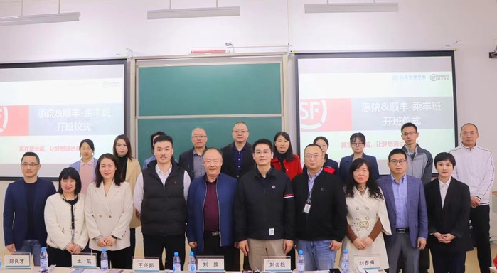 本网讯 11月25日,顺丰订单班的升级版“顺丰——乘丰班”开班仪式于旭日科技大楼B座308举行。顺丰速递(粤东)有限公司经营管理部负责人王凯总监、人力资源部负责人刘焕总监、人力生态与供应链负责人吴小宁高级经理、校园负责人刘金松经理,经济管理学院领导班子,物流管理系教师,物流管理专业学生参加仪式。仪式由物流管理系主任罗婧主持。