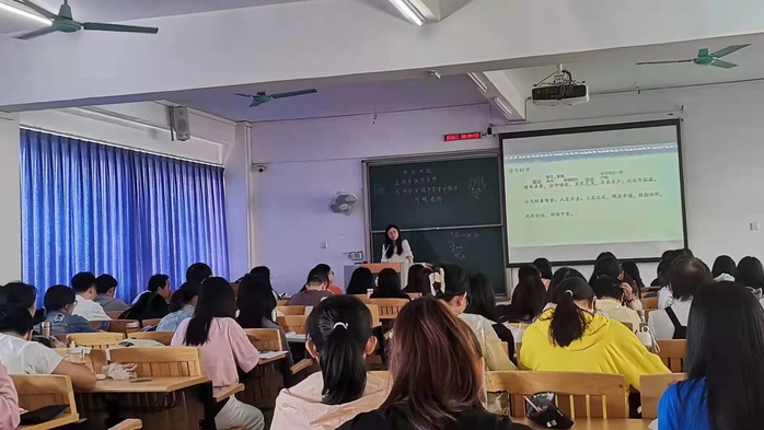 本网讯 近日,惠州市实验中学刘珮老师在旭日大楼602教室进行《中国古代文学4》的嵌入式教学活动,文学与传媒学院2019级汉语言文学2班和6班(合上)参与。活动由陈际斌教授主持。