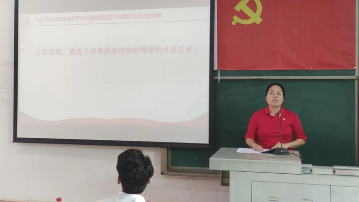 在电子楼405教室,计算机科学与工程学院学生第二党支部书记黄丽嫦以“学习习近平在庆祝中国共产主义青年团成立100周年大会上的讲话”为题讲授党课。她领学了习近平总书记在庆祝中国共产主义青年团成立100周年大会上的重要讲话精神,希望广大青年要好好学习,努力工作,拼搏奋斗,争做实现中华民族伟大复兴的生力军。