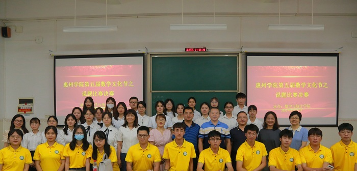 本网讯 近日,数学与统计学院举行第五届说题比赛决赛,惠阳中山中学副校长叶昌辉,惠州一中高中部数学科组长郭慧敏、初中部的教务处主任彭高阳,麦地小学教务处主任李海霞担任评委老师,校内评委有来自该院的杨水平、王海青、陈海容、刘卫东、邱美兰等领导及老师,200余名非毕业班学生现场观摩了赛事。