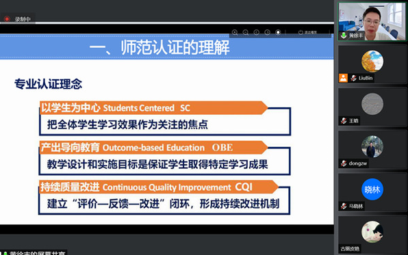本网讯 近日,新疆师范大学举办师范类专业认证培训会,生命科学学院黄徐丰老师应邀作主题为《师范专业认证工作中的自评自建》线上专题报告,新疆师范大学各二级学院师范专业负责人及生命科学学院全体教师参加了活动。活动由新疆师范大学生命科学学院刘彬副院长主持。