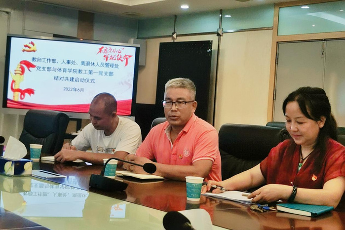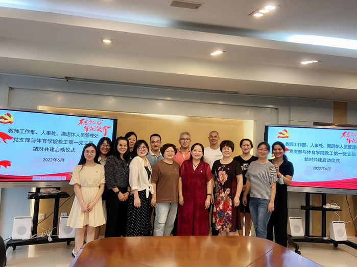 本网讯 6月17日,教师工作部、人事处、离退休人员管理处党支部与体育学院教工第一党支部在行政楼202会议室举行结对共建启动仪式。教师工作部、人事处、离退休人员管理处党支部书记赖平、体育学院教工第一党支部书记刘旭东、组织委员戴小涛及教师工作部、人事处、离退休人员管理处党支部全体党员出席了此次启动仪式。仪式由教师工作部、人事处、离退休人员管理处党支部书记赖平主持。