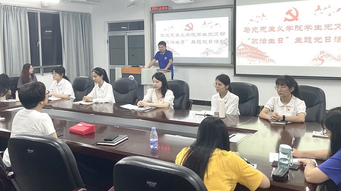 本网讯 近日,马克思主义学院学生党支部在旭日楼228会议室开展“政治生日”主题党日活动,学院党总支副书记杨倩、学生党支部书记肖文政以及学生党员出席本次活动。