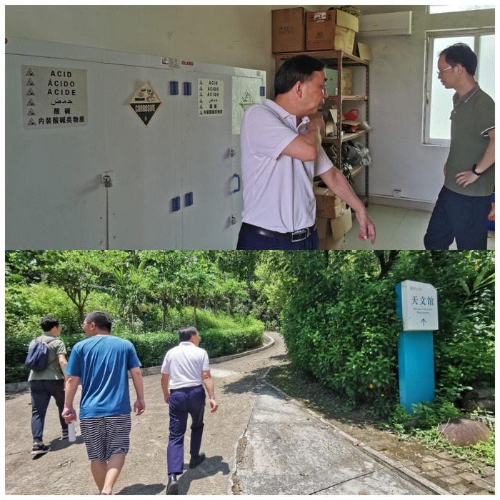本网讯 7月8日上午,地理与旅游学院院长戴学军率队对全院实验室进行了实地安全检查。各位检查人员对全院实验室逐一进行了检查,重点检查了实验室管理制度、物品摆放、实验室消防安全、实验设施设备安全、防范极端灾害天气、用水用电、房屋漏水渗水等方面的内容,对检查过程中发现的安全隐患逐一进行了造册登记并明确了整改责任人。