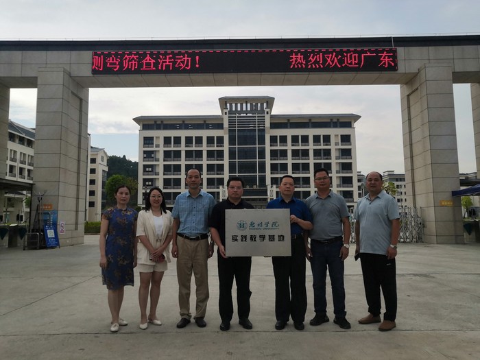 本网讯 近日,文学与传媒学院党总支书记赖常青、申东城副院长、教务员黄吉群一行三人,到博罗县龙溪二中举行实践教学基地授牌仪式。龙溪二中校长徐桂全等领导班子成员参加了仪式。授牌仪式举办前双方举行座谈会,并围绕实习生的接纳、实习生的管理、实习生的教学课程安排、实习协议的遵守、实习基地的共建等换题进行了交谈、商讨,初步并达成了共识。授牌合影