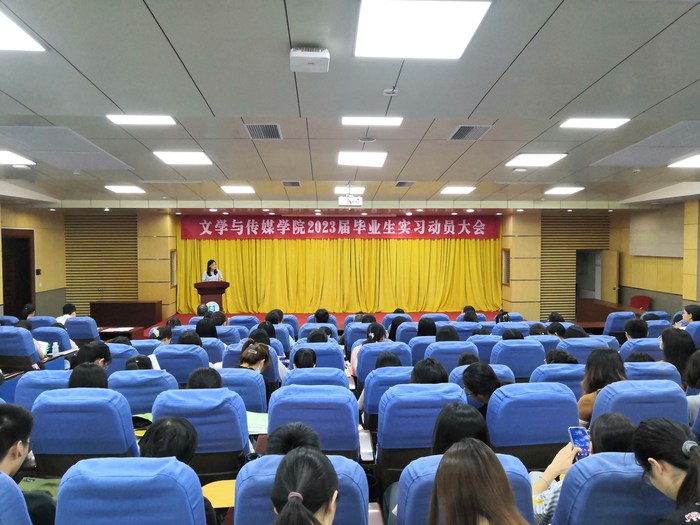 本网讯 9月9日,文学与传媒学院在图书馆学术报告厅召开2023届毕业生实习动员大会。文学与传媒学院院长、系主任、实习指导老师、教务员、辅导员、2023届学院全体毕业生参加了此次大会。大会由副院长申东城主持。