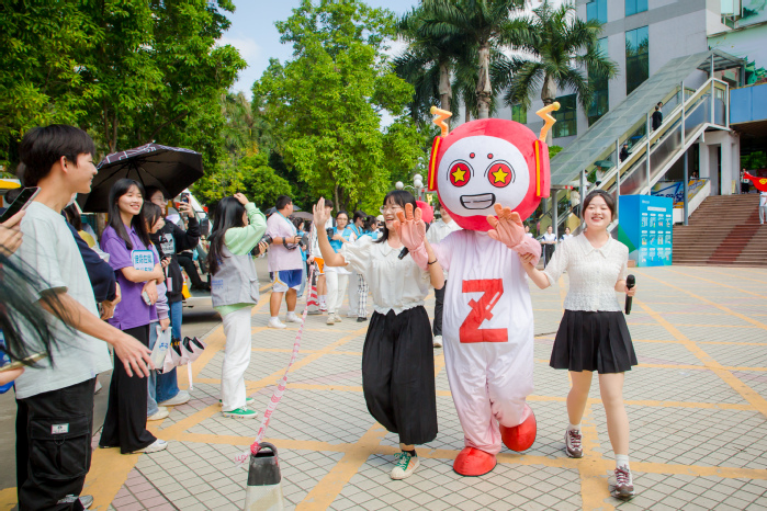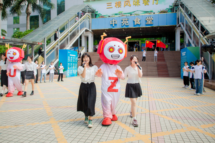 现场“齐唱校歌”快闪环节将整个活动推向高潮,同学们纷纷跟随首次亮相的校团菌小惠、小青、小春唱起了校歌,热情洋溢的笑脸和激昂澎湃的歌声让青春尽情挥洒豪迈。