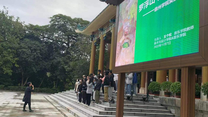 近年来,美术与设计学院倾力打造罗浮山实践教学基地,先后开展了罗浮山下的思政课、罗浮山下的视频课、罗浮山下的书法课等系列课程,积极探索实景教学模式,以美育小切口拉开了思政大课堂。
