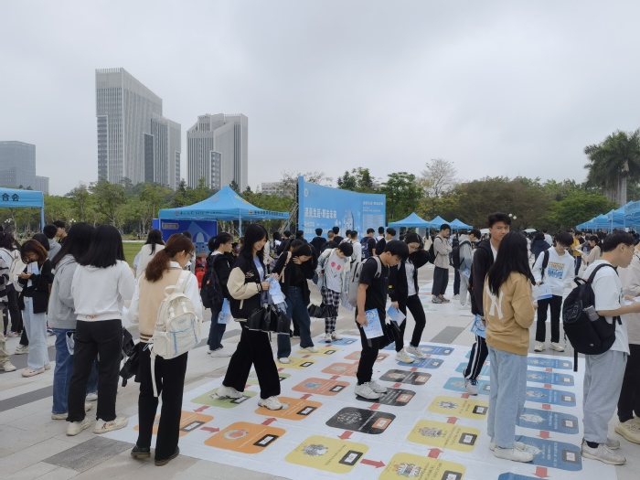 本网讯 11月7日-12日,我校第四届“遇见生涯·职击未来”大学生职业生涯体验活动在旭日广场举行。本次生涯体验周活动面向2022级全体新生,以体验式游戏的形式开展,将职业生涯规划元素融入体验式活动,分设四个区域共13个活动关卡,以自我探索——外界探索——决策行动——建构未来的生涯发展主线展开。学生通过亲身体验相关环节进行自我目标定位、自我探索、职业探索、制定计划、生涯决策等,在实践中了解自我并开展生涯规划。