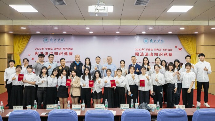 本网讯 11月25日晚,我校于图书馆学术报告厅举办2022年“学宪法 讲宪法”宪法法治知识竞赛决赛。活动由校长办公室、学生处主办,政法学院承办。活动特邀广东宝晟律师事务所高级合伙人、副主任、广东省“五一”劳动奖章获得者、广东省“最美退役军人”江迪彪,盈科股权学院副院长、北京市盈科(惠州)律师事务所肖素文等嘉宾担任评委,学生处负责人、校法律顾问,政法学院法律系师生代表和各学院参赛学生代表近两百人参加活动。