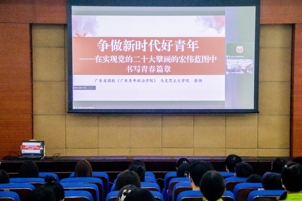 本网讯 11月23日下午,校团委特邀广东省团校马克思主义学院张扬老师作“争做新时代好青年——在实现党的二十大擘画的宏伟蓝图中书写青春篇章”专题宣讲。宣讲报告会以视频会议形式在文城会议厅举行,校团委有关人员、第九期青马班学员及各团学组织干部参加会议。