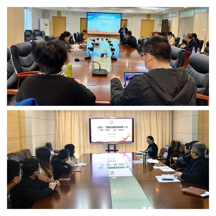本网讯 为深入开展“党建+”品牌创建专项行动,进一步推动党建业务双融双促,12月9日上午,我校在行政楼202会议室、222会议室同步举行“党建+”品牌创建项目汇报会,对24个“党建+”品牌创建项目进行中期检查。党委组织部有关负责人、“党建+”品牌创建项目负责人参加会议。会议由党委组织部有关负责人主持。