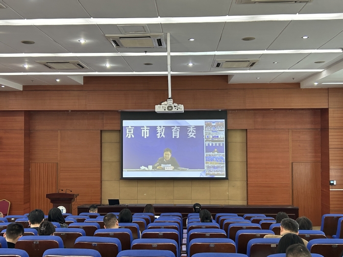 全体参会人员一起观看2023届全国普通高校毕业生就业工作第二次调度视频会议直播,认真学习领会会议精神。