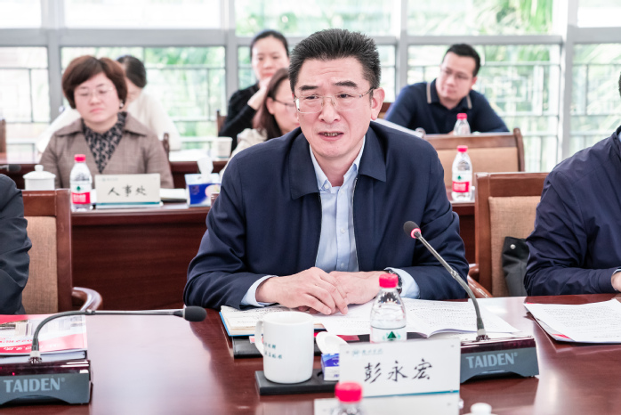 彭永宏代表学校向王瑞一行来校调研表示欢迎和感谢。郑文介绍了学校基本情况,重点汇报了近年来学校在人才引进、岗位聘用、薪酬分配、职称评审等方面的主要做法和成效。