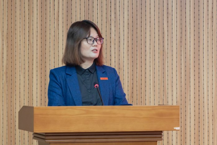 就业工作先进单位代表数学与统计学院党总支书记许秋娟作分享交流