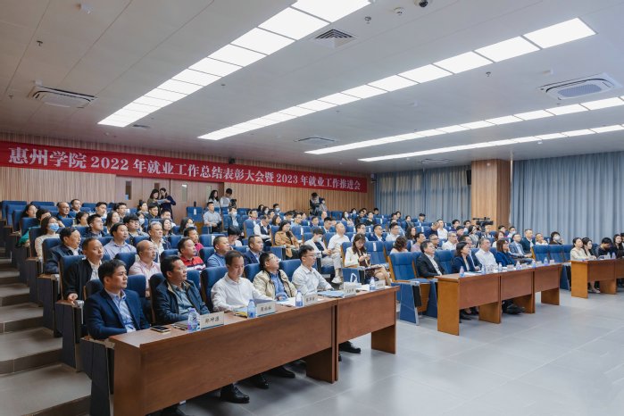 本网讯 为深入贯彻党的二十大精神,全面落实党中央、国务院对高校毕业生就业创业工作的决策部署,进一步总结工作,分析形势,全力做好我校2023年就业工作,3月12日上午,我校召开2022年就业工作总结表彰暨2023年就业工作推进会。学校党委书记、校长彭永宏,惠州市委教育工委副书记、市教育局党组成员余浩,惠州市人才交流中心主任黄三元,仲恺高新区、大亚湾经济技术开发区、惠东县等人才交流中心负责人,以及学校相关职能部门负责人,各二级学院党政负责人、党总支副书记、辅导员和班主任代表参加会议。会议由校党委副书记车小真主持。
