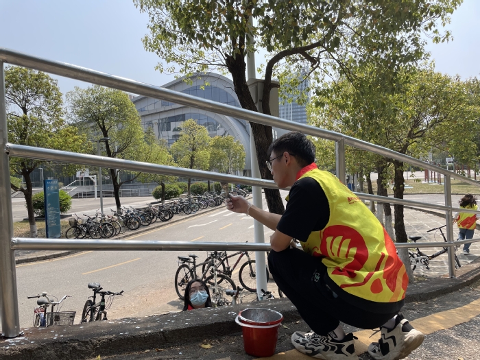 本网讯 时值三月雷锋月,为营造整洁文明的校园环境, 美化校园设施,进一步加强大学生新时代劳动教育,培育志愿服务理念,我校学生社区服务中心于3月11日开展“美好社区,你我共建”美化社区栏杆活动。