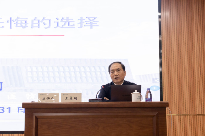 王复明院士的报告围绕“治水梦想的起源”“固坝修道的成果”和“坝道医院的使命”三个主题展开。他首先回顾了自己从青年时期立志学习水利工程专业,解决家乡水患,造福百姓的历程;分享了自己选择从事固坝修道事业的艰辛历程,经过四十余年的研究与积累,在道路铁路及机场病害诊治、堤坝及地下工程渗漏涌水防治、地下管道非开挖修复三大方面取得了重大成果。研发出了基于高聚物注浆,开发地下管道渗漏、脱空、沉降非开挖的修复技术;倡导建立“坝道工程医院”,以“开放共享,协同合作”的理念为指导,把总院作为平台,分院作为支柱,逐步形成跨地区、跨行业、网络化的“工程医院体系”。坝道医院将发展成为一个将实践与教学相融合的共享平台,让教师得以实践、研究生得以试验、本科生得以实习、职专生得以实训、中学生得以科普。