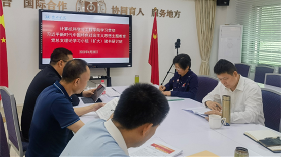 计算机科学与工程学院党总支读书研讨班坚持主题教育和中心工作两手抓、两促进,紧紧围绕学校“申硕”中心工作、学院学科专业建设、产教融合工作、课程思政建设、教师发展、学生成长成才支持等关系学院高质量发展和师生切实利益的重点领域、关键环节展开专题研讨,以此激发全体师生党员干事创业的热情和强大动力,全力推动学院高质量发展。与会党政班子成员带头领学,读书班学员围绕主题深入讨论交流,以问题为导向,坚持学中问、问中学的方法,推动主题教育和中心工作实现两促进、走在前。