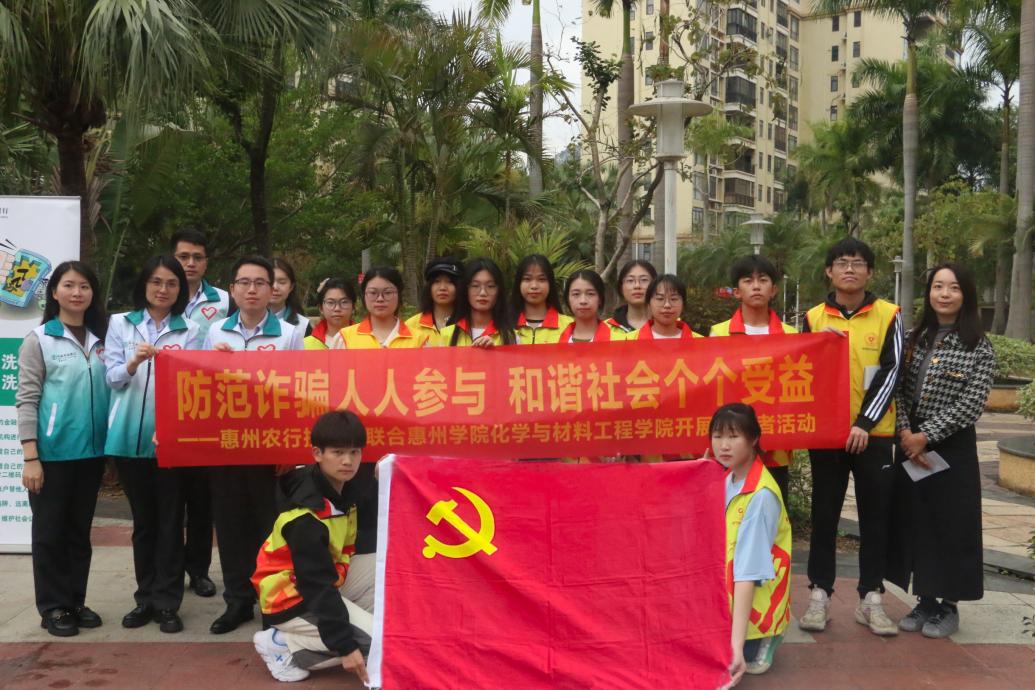 本网讯 在3·5学雷锋日,化学与材料工程学院学生党支部党员开展了一场主题为“反诈宣传进社区,青年党员在行动”的志愿活动,走进金山龙庭小区,为住户们普及反诈知识,提高居民的反诈意识,此次活动在中国农业银行惠州分行投融部的支持下顺利开展。
