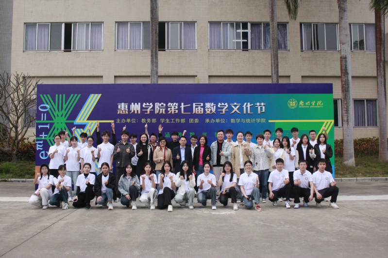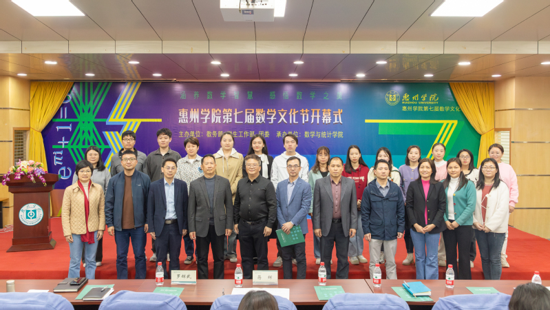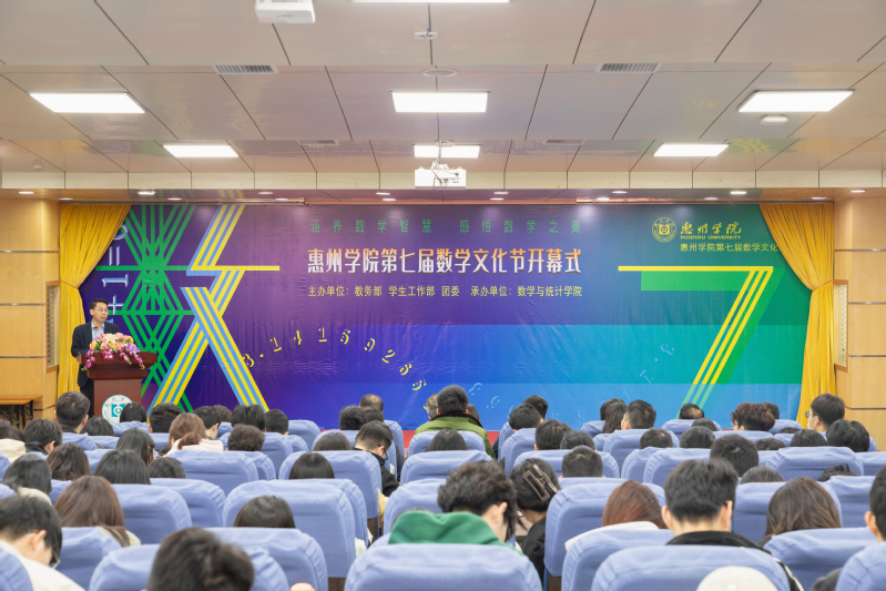 本网讯 2024年3月14日,第五个国际数学日之际,惠州学院举办第七届数学文化节,致敬祖冲之等伟大数学先贤,践行惠院学子“青春有为,数学报国”的信念与情怀。文化节由教务部、学生工作部、校团委主办,数学与统计学院承办,开幕式在图书馆学术厅举行。