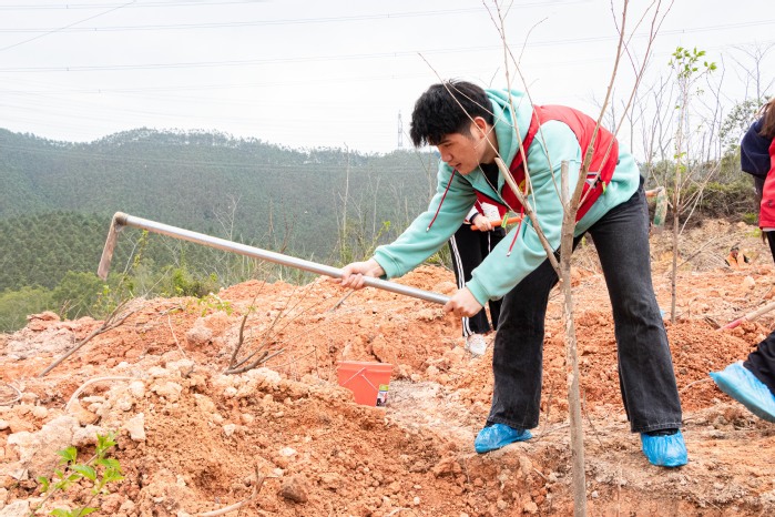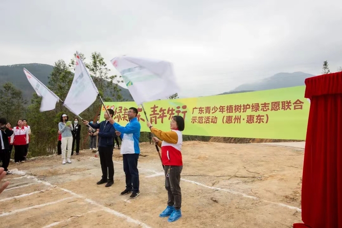 本网讯 为响应国家生态文明建设的号召,深入贯彻绿美广东生态建设工作部署,3月14日上午,我校组织12名绿美广东志愿服务队队员前往惠东县平山街道碧山村参加“绿美广东·青年先行”广东青少年植树护绿志愿联合示范活动。