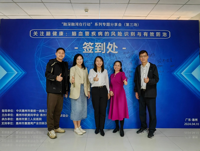 本网讯 4月10日下午,我校侨联会员代表钟秀妍、邱美兰、赖运辉、刘海金参加惠州市欧美同学会·惠州市留学人员联谊会“融深融湾在行动”专题分享会(第三场)。