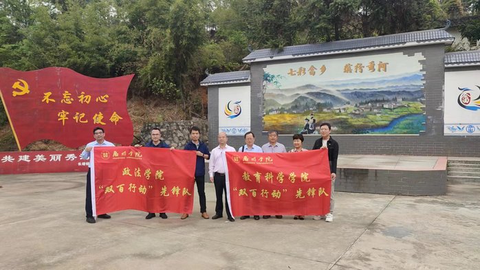 本网讯 为进一步推动“双百行动”共建项目的实施,4月11日,政法学院党总支书记曾蔚阳、教育科学学院党总支书记谢伟强,率政法学院、教育科学学院乡村振兴服务团队一行九人,赴河源市和平县长塘镇秀河畲族村开展“双百行动”工作调研。