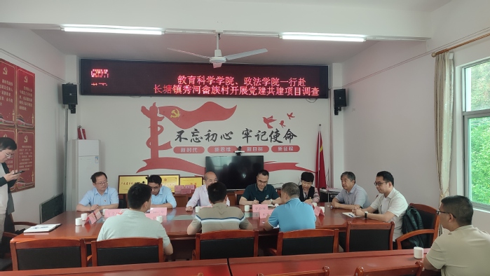 谢伟强对该村建设取得的显著效果表示赞赏,同时就教育科学学院的师资队伍、办学定位、办学特色和办学成果等情况进行介绍,重点介绍了学院在服务地方基础教育方面积累了宝贵经验,希望双方以“双百行动”为契机,开展共建项目深度合作,进一步发挥高校学科专业、人才、创新等优势,共同解决推进合作过程中遇到的难题和问题。曾蔚阳也对政法学院的有关情况进行了介绍,并表示可围绕乡村治理、法治宣传、基层治理等方面开展合作。其他参会老师也畅所欲言,双方达成了众多共识。座谈会后,在朱军越书记的带领下,调研组还到秀和小学及浰东小学进行了考察。