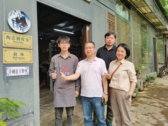据悉,许嗣达校友毕业后师从余小伦老师,在东平窑陶瓷文化园深耕陶瓷工艺8年,近日获评“全国轻工技术能手”荣誉称号。参访领导老师充分肯定了该校友在工作岗位上长期坚守的工匠精神,希望未来能加强校企联动,带动更多对陶瓷感兴趣的在校生选择陶瓷行业,在就业创业的同时延续中华优秀传统文化,展现当代青年大学生的文化使命和责任担当。