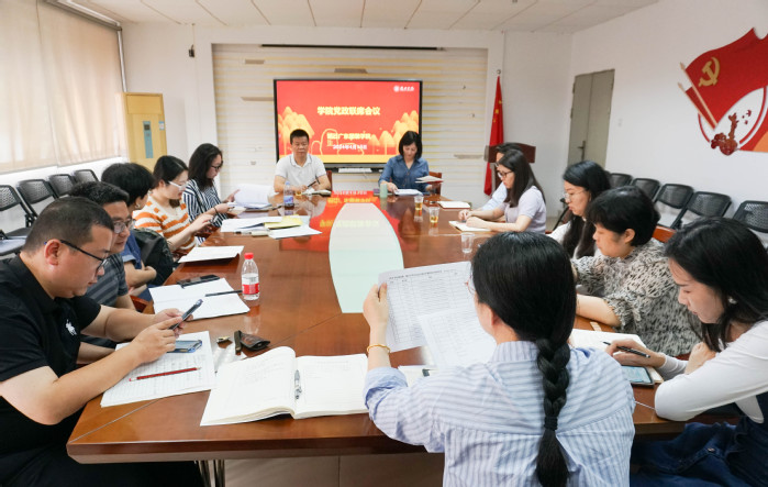 本网讯 4月15日上午,学院党总支在服装楼310会议室召开了党总支(扩大)会议暨党支部书记例会。会议由党总支书记张小琨主持,学院党政班子成员、所属党支部书记、副书记、各系、中心主任参加。