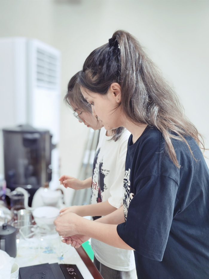 经过专业训练的尼可工作室成员分工明确、高效合作,为参会人员提供了高规格、高质量的手冲咖啡。会议室内咖啡香气弥漫,氛围严肃又令人感到愉悦。会议期间,惠州市旅游资源普查工作多次被专家表扬,称赞惠州是其已走访的省内18个城市中,旅游资源普查工作中期汇报做的最好的一个城市。会后,专家与两位同学进行了亲切的交谈,了解其在学校的学习与生活,并对其手冲技法赞不绝口。