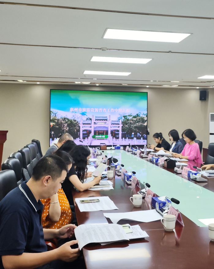 本网讯 4月18日,惠州市旅游资源普查工作中期研讨会在惠州市文化广电旅游体育局举行,广东省文化和旅游厅资源开发处三级调研员邹忠、广东省文化和旅游发展与保障中心副主任余殷博士等专家领导莅临会议。我院尼可工作室成员米合热班·麦麦提、马舒宜受广东捷点调研咨询有限公司邀请,为该会议提供了专业的会议服务。