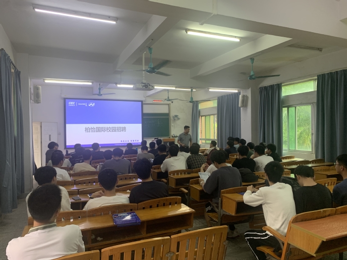 参观结束,两家企业在电子楼408进行宣讲会,招聘实习生需求达40人,我院2021级近60人参加宣讲会。
