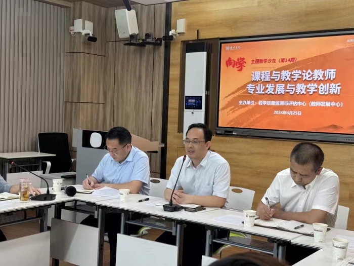 本网讯 为进一步加强学校课程与教学论教师队伍建设,提升课程与教学论教师教学改革能力,4月25日,教学质量监测与评估中心(教师发展中心)举办主题为“课程与教学论教师专业发展与教学创新”的第十四期“向学”教学沙龙活动。活动邀请惠州市惠城区教师发展中心主任涂志荣、惠州市第五中学校长邱炯亮、惠州学院广东省中小学教师发展中心常务副主任张小平,以及学校课程与教学论领域相关专家进行经验分享与指导,我校各学科课程与教学论教师及其他感兴趣的教师20余人参加活动。
