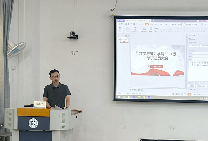 本网讯 5月9日下午,我院在旭日107举行考研动员大会暨专题辅导讲座。本次讲座由院长杨水平主讲,院党委书记林少章、党委副书记陈海容、系主任陈国汉、李德旺、袁嘉蔚老师及2020级考研学生代表、2021级学生代表共同聆听讲座。讲座由2021级辅导员蒲苡禾主持。