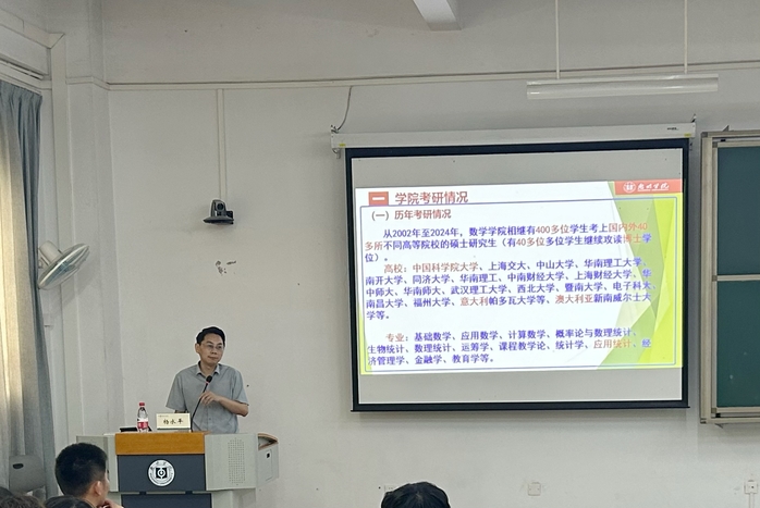杨水平从“学院考研情况、为什么要考研、如何选专业、如何选学校、如何备考”等五个方面做考研专题指导。他从专业发展、梦想追求、就业质量、人生规划、理想信念等方面分析了考研的目的。结合近几年严峻的就业形势及我院近几届的考研情况,分析了近两年国内外、省内省外相关院校和专业的研招情况,指导不同专业学生如何科学选择报考学校及专业。建议同学们打开格局和视野,在报考学校方面要放眼全国甚至国外。在备考方面,勉励同学们调试好心态迎接备考挑战,并结合专业学习就不同阶段的复习给同学们进行了指导,建议同学们多向专任老师请教,加强和师兄师姐的交流。他希望同学们坚定信心,明确目标,科学备考,并祝愿同学们考研顺利,旗开得胜。