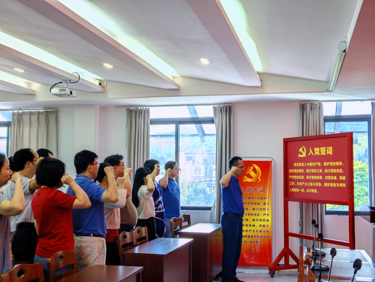 在党员政治生日主题党日活动中,曾蔚阳带领党员教师们重温了入党誓词,并向上半年过政治生日的党员教师发放生日贺卡。曾书记在讲话中指出,各位党员不忘共产党员的初心和使命,在 “双百行动”“申硕攻坚”等学院中心工作中发挥模范带头作用。随后,在当地负责人的陪同下,学院一行走访了横江村白盆珠水库等地,了解当地发展状况和帮扶需求。双方将继续深化合作,以“党建引领,三治结合”共同探索推进白盆珠镇乡村振兴的更多可能。