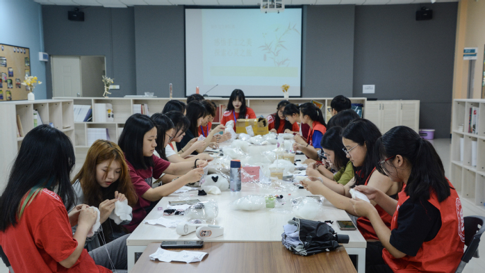 活动伊始,志愿者向学生们详细介绍了制作方法和注意事项。制作过程中,组织方为同学们提供了丰富多样的材料选择,如色彩缤纷的布料、可爱的装饰品以及实用的缝纫工具等。现场同学们根据喜好和创意,挑选合适的材料,打造出独一无二的包包和玩偶。