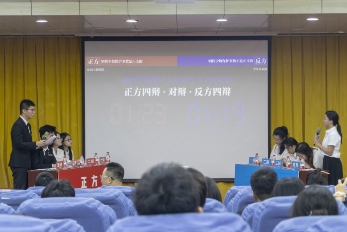 据悉,东江学子辩论赛作为惠州学院第二十六届科技文化艺术节子项目,受到全校师生的广泛关注,17个二级学院派出108名辩手参赛。本次活动进一步激发了我校新时代大学生对社会问题和社会现象的深层次思考,培养了学生团队协作能力,丰富了同学们的课余生活,营造了浓厚的校园文化氛围。